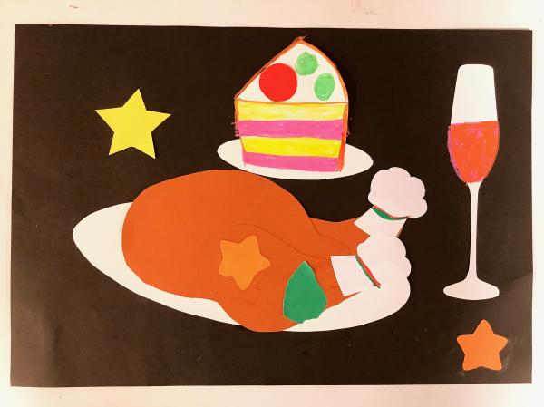 貼り絵「クリスマスのご馳走づくり」