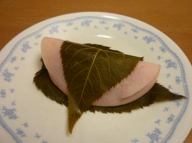 本日ご用意した桜餅は、大きな桜の葉が2枚ついており、会場に
