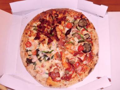 ピザはドミノピザの「クワトロ・3ハッピー」です。
