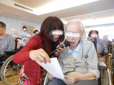 ボランティアさんと一緒に歌うお姿はとてもご立派で、年齢を感じ