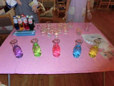 ジューススタンドでは、炭酸ジュースを用意しました。かき氷シロップで綺麗に色づけ。
