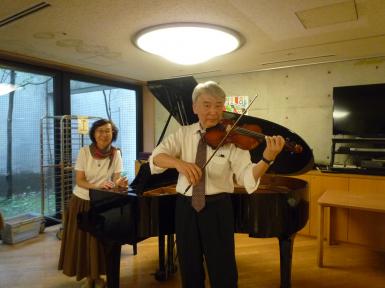 こちらのバイオリン奏者の正体は通所リハビリの職員です。