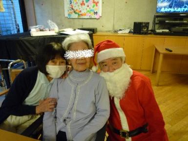 現在施設内で感染症が流行っている為、ゲストを一同に集めてのクリスマス会は止めて、スタッフがフロアを回って行ないました。