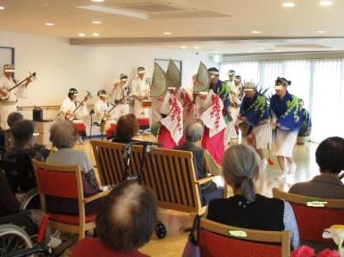 先日千壽介護老人保健施設では指圧連というボランティアさんによる阿波踊りを行いました。