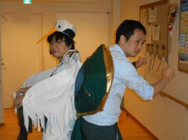 午前中は鶴と亀の格好をした職員が体操実施、