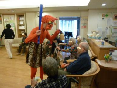 鬼退治の後には福の神がやってきて、皆さんに甘納豆のプレゼントをおいていったそうです。普段レクリエーションに参加しないゲストも楽しそうにボールを投げていて、よい運動にもなったようです。