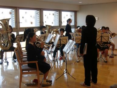 施設内で金管バンドの演奏を聴くのは初めてでしたが、小学生ながら迫力の演奏に、皆さん大いに楽しまれていました。