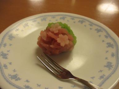 龍岡の喫茶会では、春らしい桜の練り切りを提供しました。
