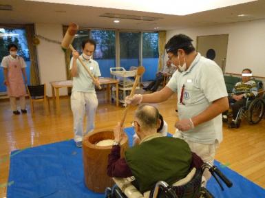 櫻川でもゲストと職員が協力して鏡餅を作りました。