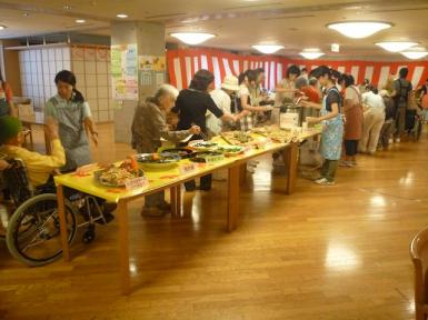 毎年少しずつ趣向の違うアイデアを盛り込んでいる、敬老会のバイキング。