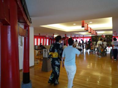 大きな鳥居をくぐると、懐かしい夏の神社の縁日の雰囲気です。