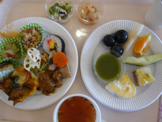 そしてデザートも、いろいろな果物、水羊羹、ロールケーキ、紅芋ケーキ、杏仁豆腐…。