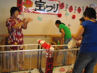 スタッフ作の「宝つり」は、ご覧のように大がかりで、景品も大物。