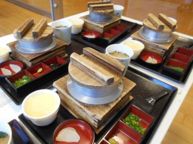 今回の昼食会では、熱々の釜飯を取り寄せました。