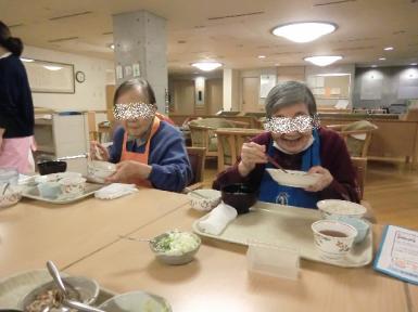 三枚目のお写真は完成したお豆腐を召し上がっている場面です。