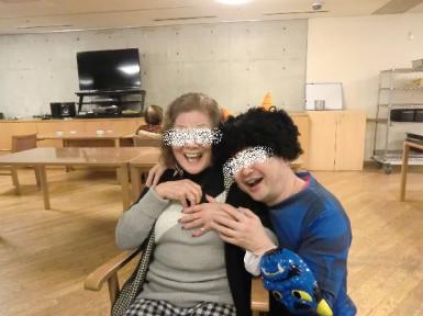文京区の龍岡老健では、午前中に鬼がゲストのところへやってきました。