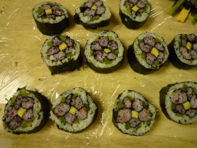 太巻きを作りましたが、今回は「飾り祭り寿司」を作りました。