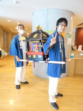 龍岡会のはっぴをはおったスタッフが、「鶴は千年、亀は万年」の掛け声でお神輿をかつぎました。