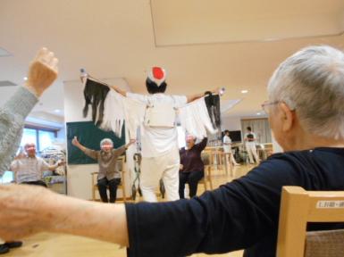 これからもお元気で過ごせますよう、スタッフの気持ちをのせた『鶴・亀』がゲストと体操を行いました。