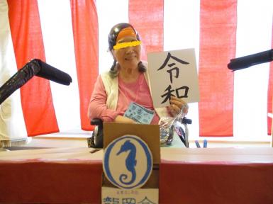 毎年職員が趣向を凝らして、背景や小道具を作りますが、今年はやはり「令和元年」ですから、これしかないでしょう!ということで、菅官房長官になっていただきました。