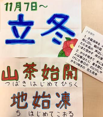 ご参加の皆様にも二十四節気の『立冬』と、七十二候から二つ『山茶始開』と『地始凍』のお話をしてから