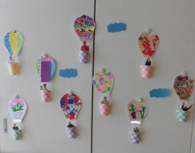 5月の青空に浮かぶ気球をイメージして、思い思いの気球を